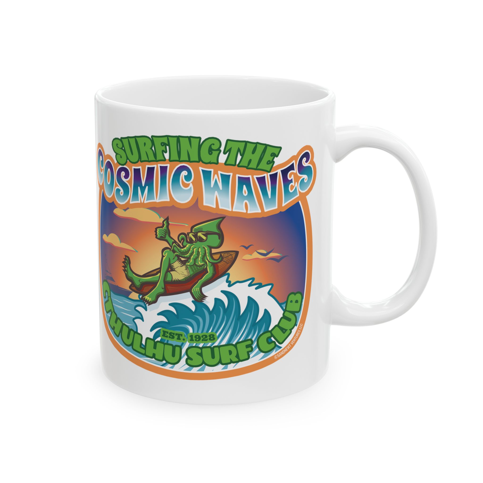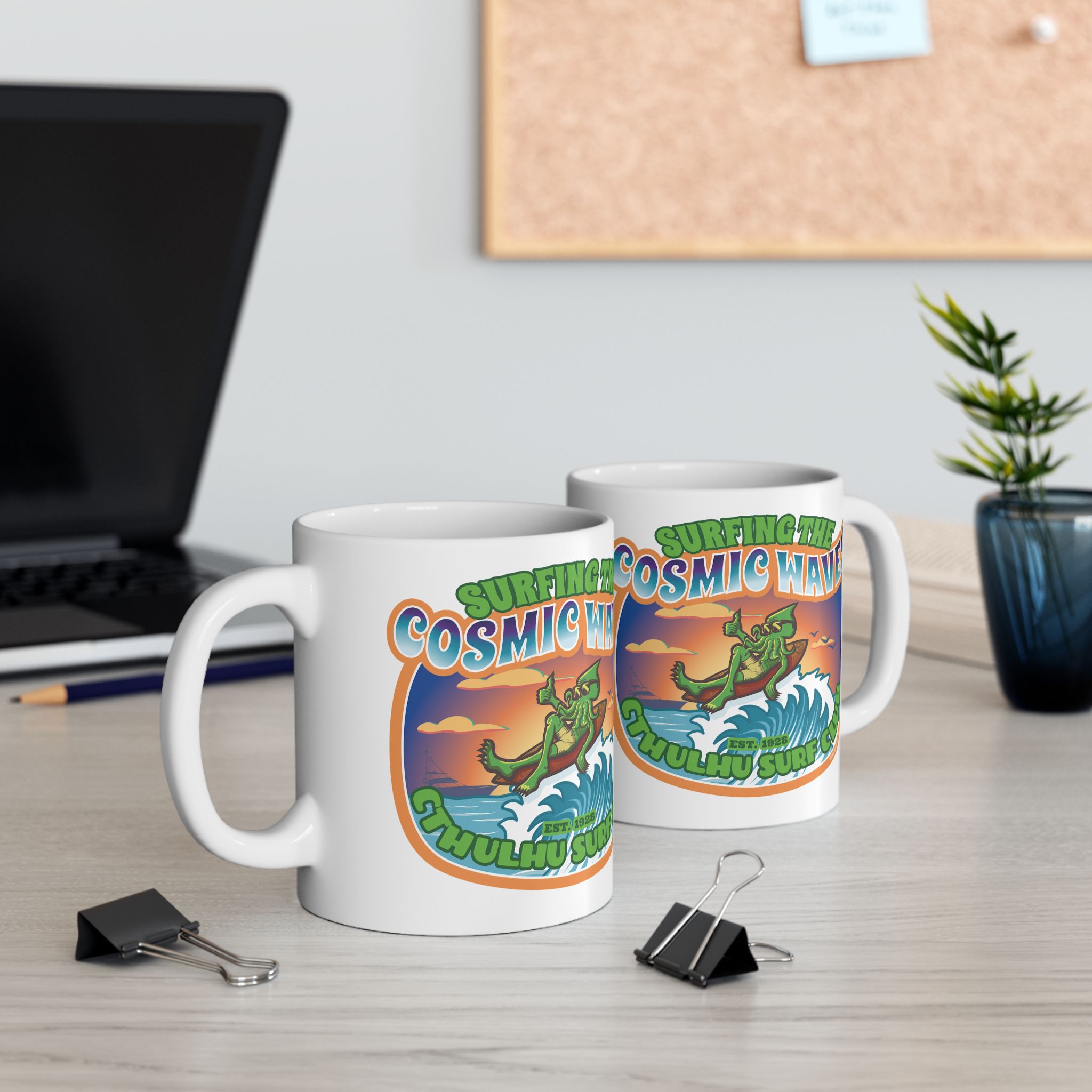 **Product Description: “Surfing the Cosmic Waves” Cthulhu Mug**